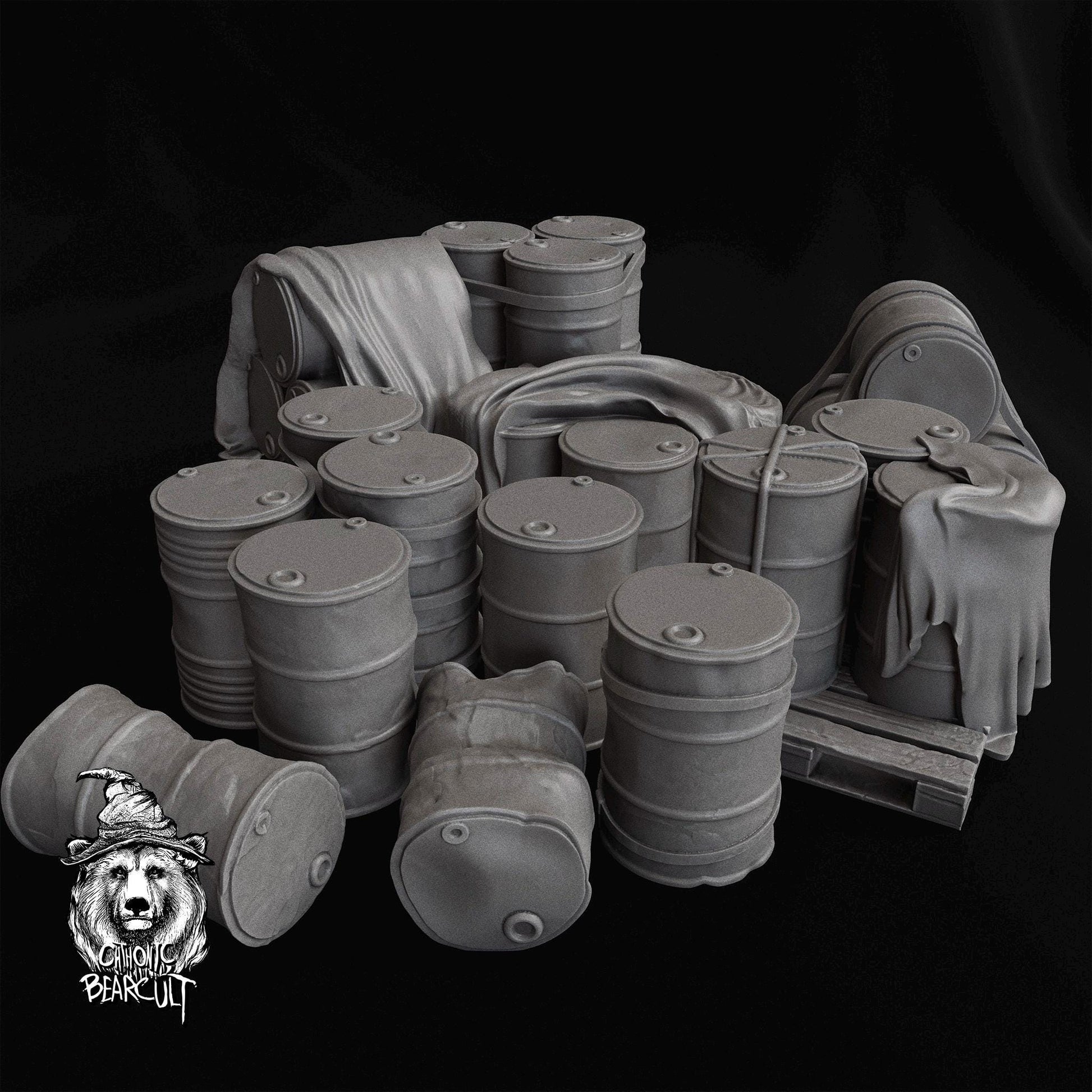 Wargaming Terrain Set of barrels and props | 3D Printed Miniatures in 1:56 Scale
